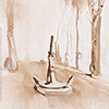 22-osainen maalausinstallaatio, joka panoraamana kiertää katsojaa akryyli- ja kananmunatempera, öljy ja alkydi kankaalla sekä vaijerilukkoja, puuta ja naruja.