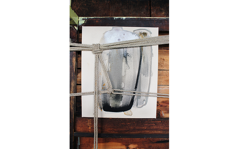 • Maalauksia ja sidontaa ripustus, Blocks, yksityiskohtia installaatiosta