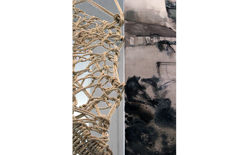 Maalauksia ja sidontaa ripustus, Untitled Good, yksityiskohta installaatiosta